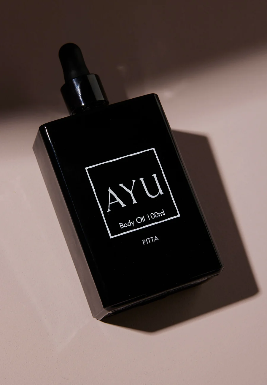 Ayu’s Pitta Body Oil is a blend of 29 herbs, formulated from an ancient Ayurvedic recipe to help relieve stress and exhaustion. The natural fragrance of sandalwood, rose and patchouli helps to soothe the senses, restore calmness, relax the mind and elevate the spirit. Scented lightly with Sandalwood, Rose and Patchouli.